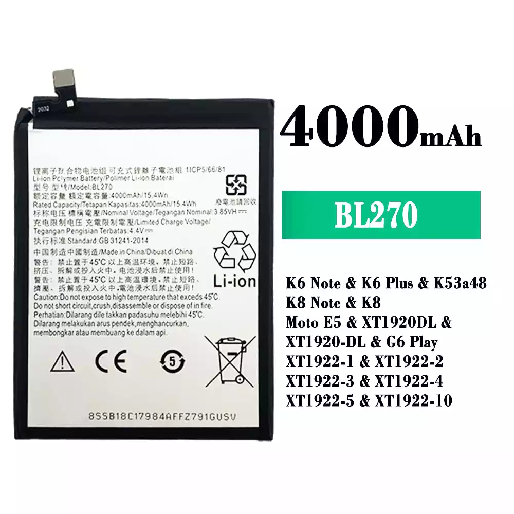 Batéria BL270 pre Lenovo K6 Note / K6 Plus / K53a48 / K8 Note / K8 / Moto E5 / XT1920DL / XT1920-DL / G6 Play / XT1922-1 / XT1922-2 / XT1922-3 / XT1922-4 / XT1922-5 / XT1922-10