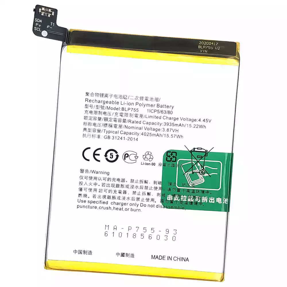 Batéria mobilného telefónu BLP755 pre OPPO Reno 3 4G 2020 / Reno 3 5G / Reno 3 Pro / Reno 3 Youth / Find X2 Lite